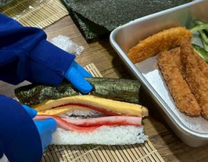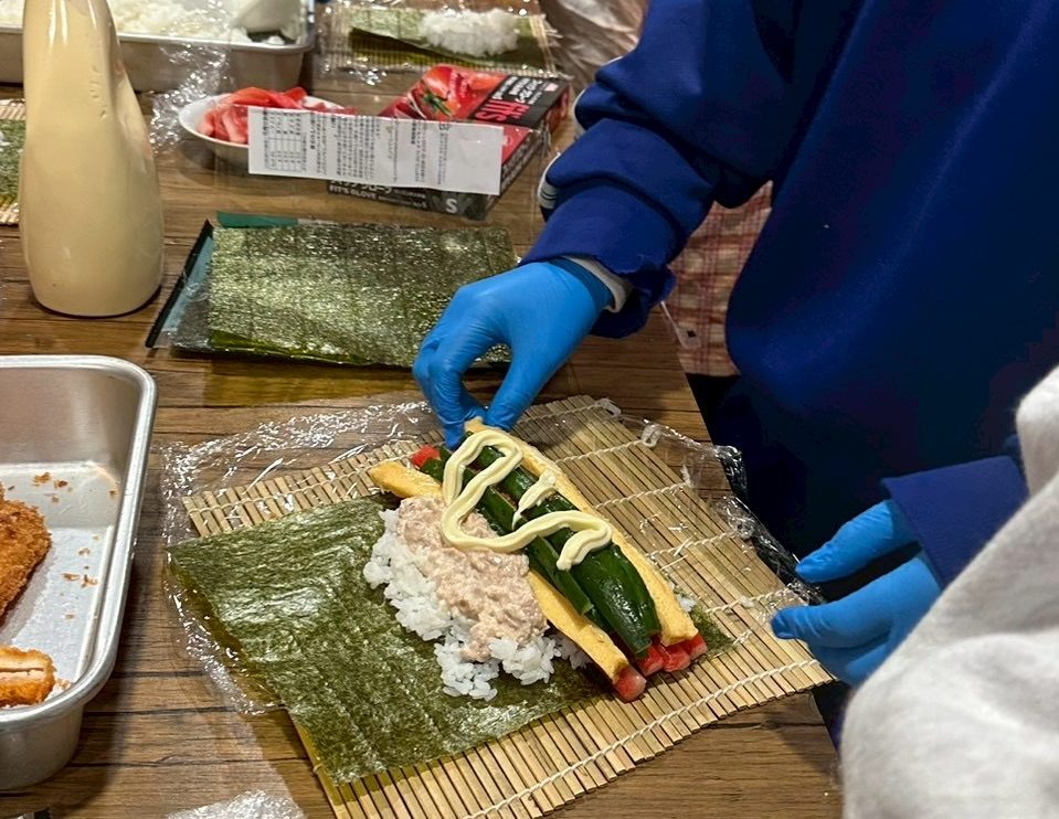 今年もスタッフが作り方をレクチャーしたあと、ボランティアさんの協力のもと、こども達が一人一本ずつ“自分だけの恵方巻き”づくりに挑戦しました😊