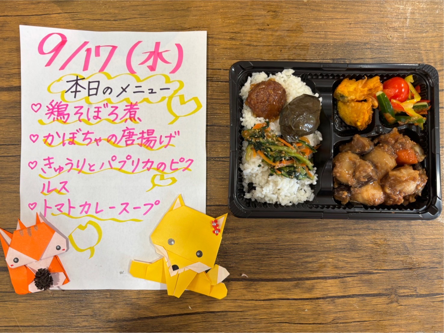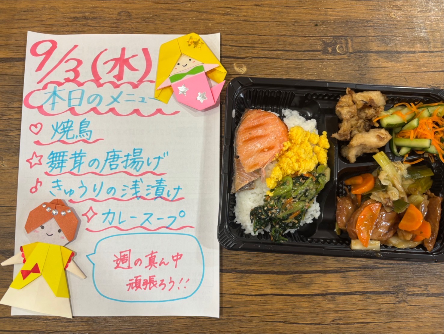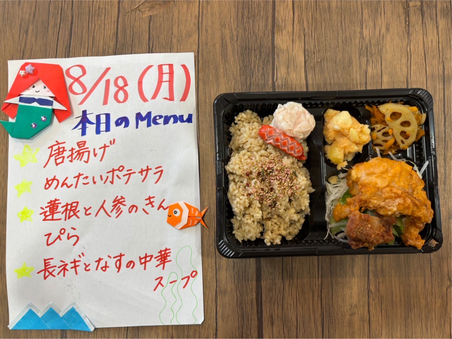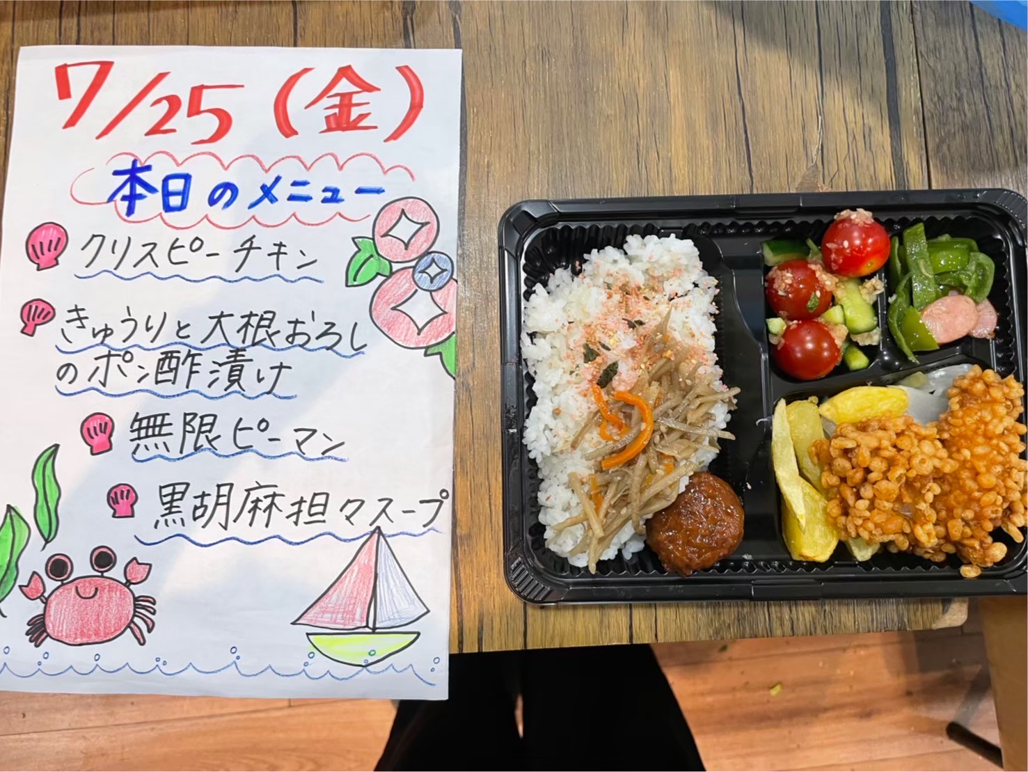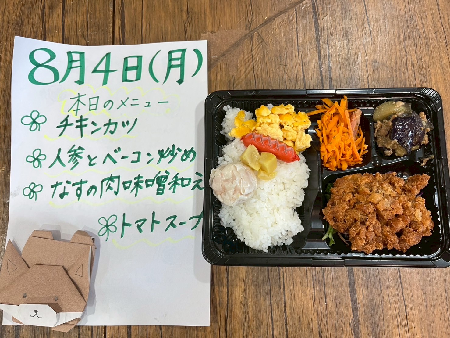 お弁当だけじゃなく、手作りのメニュー表もなないろの楽しみのひとつ。