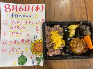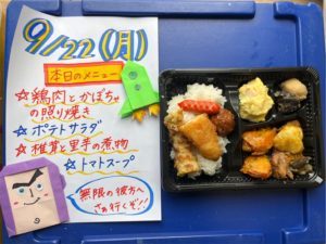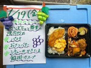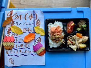 寄付でいただいた食材を使って、スタッフとボランティアさんでアイデア・愛情たっぷりのお弁当を手作りしています💛