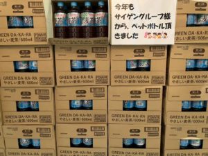 サイゲングループ様からは、お弁当容器だったり、毎年ドリンクの寄付・そしてお弁当作りに欠かせない調味料をいただいております。